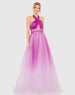 This elegant gown features a halter neckline and sleeveless design, perfect for formal occasions. The ombre effect adds a touch of sophistication and style.
