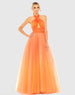 This elegant gown features a halter neckline and sleeveless design, perfect for formal occasions. The ombre effect adds a touch of sophistication and style.