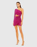 Pink One Sleeve Cut-Out Draped Front Beaded Mini Dress - FINAL SALE