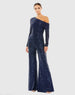 This statement-making jumpsuit is everything! Covered in petite, high-wattage sequins, the body-skimming jumpsuit is styled with a gorgeous pleated collar that slips off the shoulder, long sleeves, and bell-bottom legs. Just add simple heels and let the ravishing one-piece do the talking.