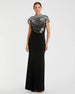 This High Neck Embellished Column Gown offers a sophisticated yet glamorous look. The high neckline and cap sleeves enhance the elegance of the column silhouette, while the intricate embellished detailing adds a touch of glamour.