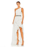 White Pleated One Shoulder Asymmetrical Ruffle Hem Gown