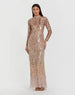 Pink Mock Neck Long Sleeve Fringe Embellished Column Gown