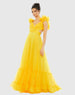 The Mac Duggal Iconic Ruffle Gown. Floor length tiered gown with daring side cutouts, a lace-up back, and dramatic ruffles at the shoulder. This best-selling silhouette is flattering on most body types and easily adjustable for the best fit.