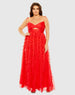 This sleeveless gown features a sweetheart neckline, daring bodice cut-out, and cascading ruffles. Crafted from airy chiffon fabric it's the perfect dress for any summer event.