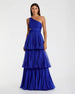 Elegance and playfulness come together in this tiered chiffon gown. Crafted from pleated fabric, the dress boasts a chic one shoulder neckline and a flattering tiered ruffle skirt. Perfect for any special occasion, this gown is sure to make you stand out in style.