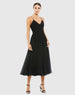This spaghetti strap chiffon dress features a flattering crossover V-neckline, a ruched bodice, and a midi-length A-line skirt for a graceful, feminine silhouette. Perfect for any elegant occasion, it combines comfort and style effortlessly.