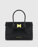 Black Crocodile Leather Tote Bag With Gold Hardware