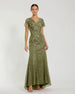Embellished V Neck Cap Sleeve Trumpet Gown