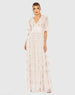 Floral V-Neck Ruffle Detail Empire Waist Gown