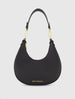 Black Grain Leather Hobo Bag With Gold Hardware