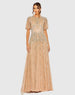 Embrace timeless elegance in this high neck embellished puff sleeve gown. The stunning allover embellishments and flattering a-line silhouette make this the perfect gown for any black-tie affair or evening event.