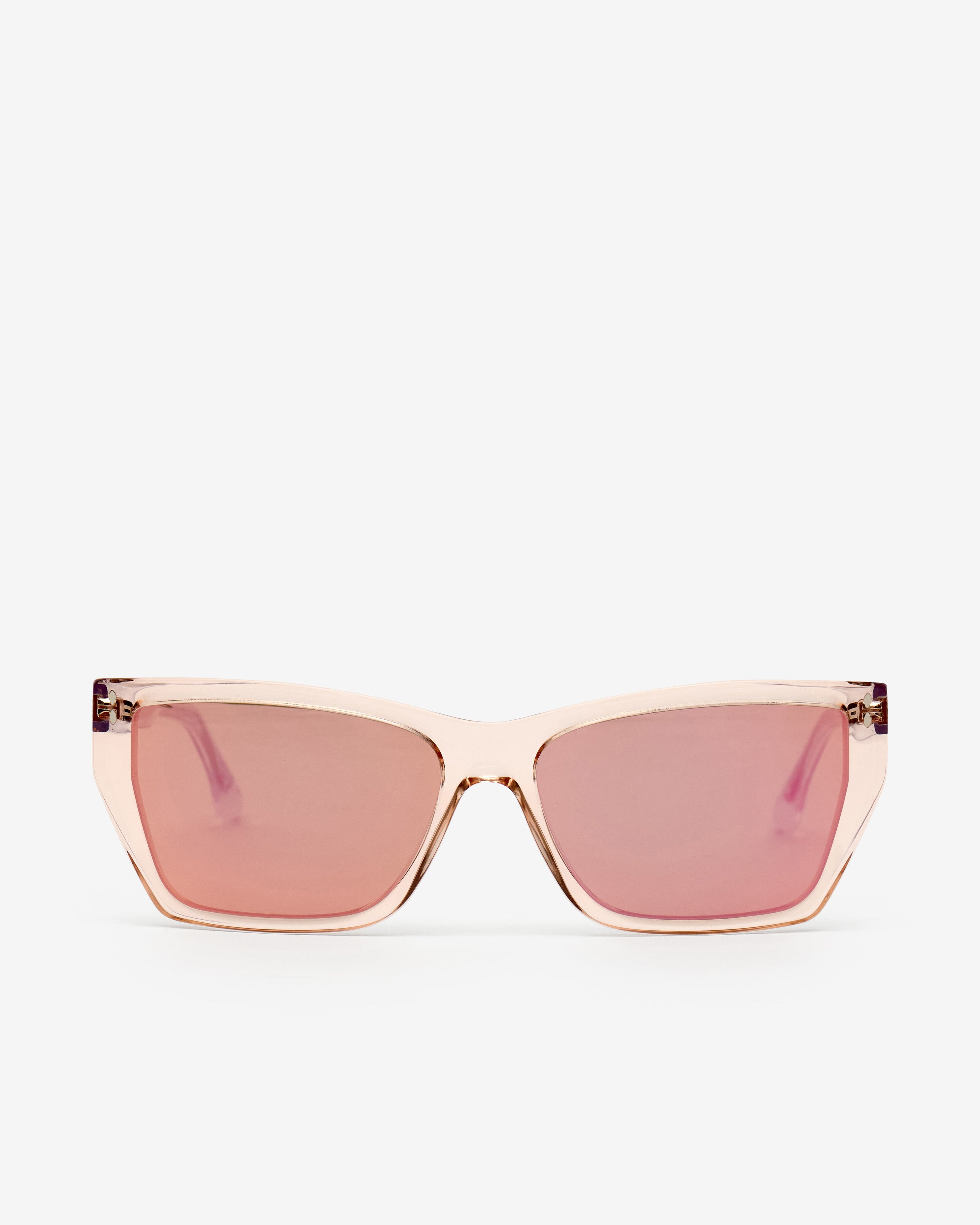 Thin temples in transparent acetate with a gradient silver metal insert and a discreet engraved logo on the sides.