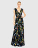 Multicolor Pleated Floral Cap Sleeve A Line Gown