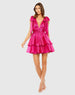 Make a statement in our Satin Mini Dress with exaggerated shoulder bows, a deep V-neckline, and a pleated belted waist. The tiered ruffled skirt adds playful charm, making it perfect for date nights, parties, and special occasions.