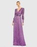 Purple Sequined Wrap Over Bishop Sleeve Gown