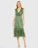 Sequined Wrap Over Cap Sleeve Ruffle Hem Dress